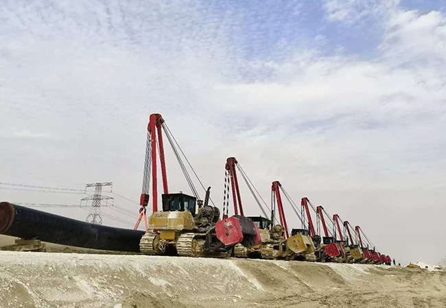 中蘇海工吊管機(jī)集群?jiǎn)⑦\(yùn),高溫戰(zhàn)力全開(kāi)助建沙特石油動(dòng)脈